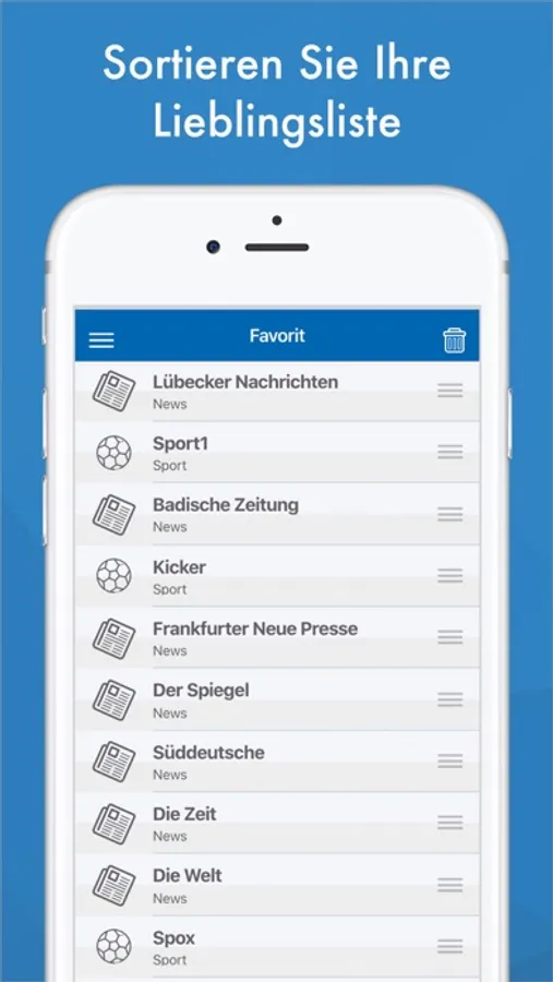 Some of the newspapers you can find are: 4players, Aachener Nachrichten, Aachener Zeitung, Abendzeitung Muenchen, AFP DE, All-in, Augsburger Allgemeine, Autobild, Badische Zeitung, Badisches Tagblatt, Berliner Kurier, Berliner Morgenpost, Berliner Zeitung, Bild, Borkener Zeitung, B.Z. Berlin, Capital, Chip, Computer Bild, Der Spiegel, Der Stern, Der Tagesspiegel, DerWesten, Dewezet, Deutsche Welle, Die Welt, Die Zeit, Express, Focus, Frankenpost, Frankfurter Allgemeine, Frankfurter Neue Presse, Frankfurter Rundschau, Freie Presse, General-Anzeiger, GEO DE, Giga, GMX, Goettinger Tageblatt, Golem, Google News, Hamburger Abendblatt, Hamburger Morgenpost, Handelsblatt, HAZ, Heise, Heute, HNA, Junge Freiheit, Junge Welt, Kicker, Kölner Stadt-Anzeiger, Kreiszeitung, Lübecker Nachrichten, Leipziger Volkszeitung, Main-Post, Mindener Tageblatt, Mittelbayerische Zeitung, Mitteldeutsche Zeitung, N24, Neue Osnabrücker Zeitung, Braunschweiger Zeitung, Neues Deutschland, Nordwest Zeitung, n-tv, OVB, Passauer Neue Presse, Reutlinger General-Anzeiger, Revier Sport, Rheinische Post, Rhein-Neckar-Zeitung, Rhein-Zeitung, RTL, Rundschau, Saarbruecker Zeitung, Sächsische Zeitung, Schleswig-Holstein, Schwäbisches Tagblatt, Sport1, Spox, Stuttgarter Nachrichten, Stuttgarter Zeitung, Süddeutsche, Tagesschau, TAZ, Thüringen, Transfermarkt, TZ, Weser Kurier, Westdeutsche Zeitung, Westfälische Nachrichten, Wetter, Wetter Online, WirtschaftsWoche, Wolfsburger Allgemeine...