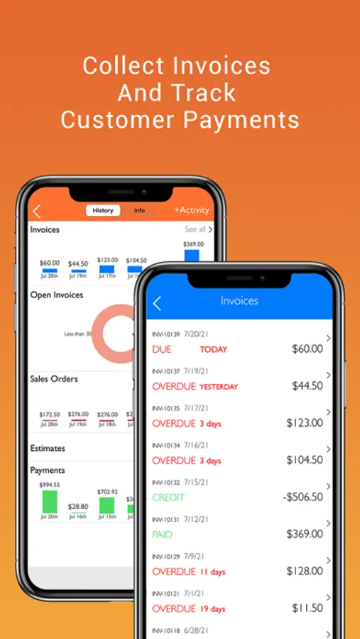With access to product inventory and pricing information, your sales team can quickly and efficiently create estimates, sales orders and invoices in the field. Connect a mobile device to a mobile printer for proof of delivery.