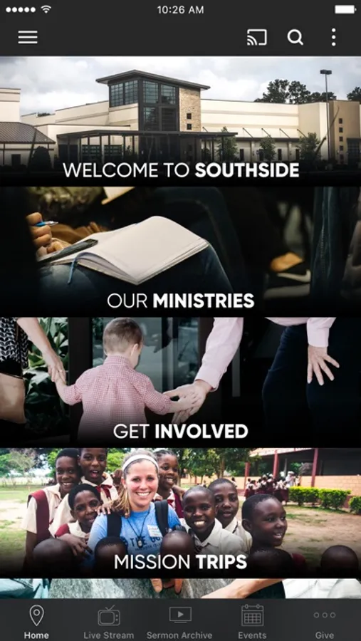 The Southside Baptist Church App was created with the Subsplash App Platform.