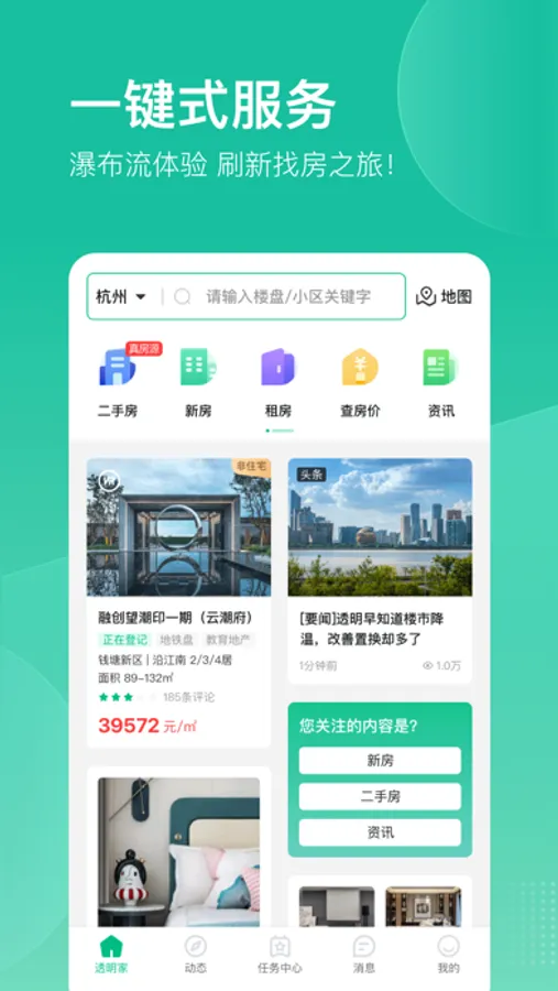 透明家App是集合二手房新房租房等真实房源信息,拥有找房源、查房价、追走势、看资讯、房屋估值等功能的专业房产应用。