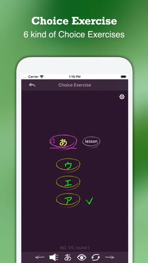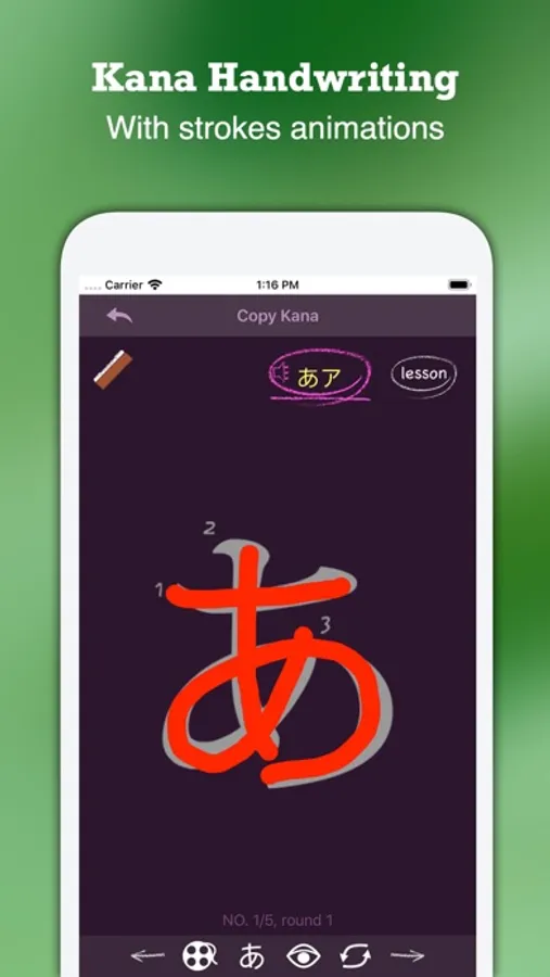+ Copy Kana: You can trace over the gray character with finger to practice handwriting for Seion letters, we also provide writing animations for them.