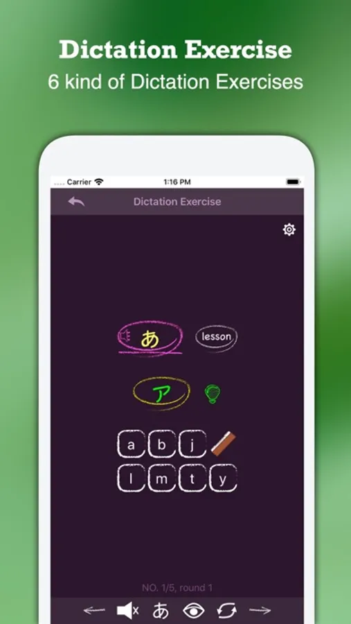 + Dictation: According to the hiragana / katakana, write the matching katakana / hiragana or romaji. You can hide the question to enter the dictation mode.