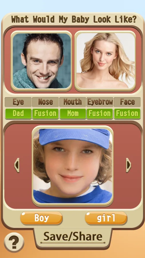 It allows you to take pictures of two people and see what their baby would look like! It uses facial feature recognition technology and digital image processing to create an estimated baby image from two parent images.