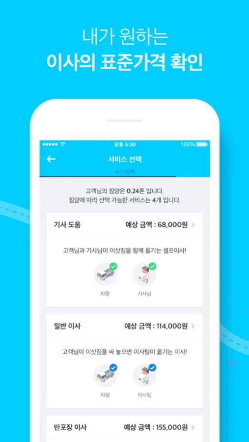 손가락 하나로 견적, 예약, 결제까지 한번에!