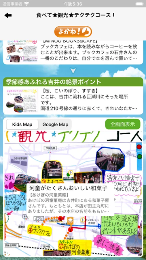 うきはの情報を見つけて、場所を調べて、電話をかける事ができるので、うきは観光にとっても便利なアプリです。