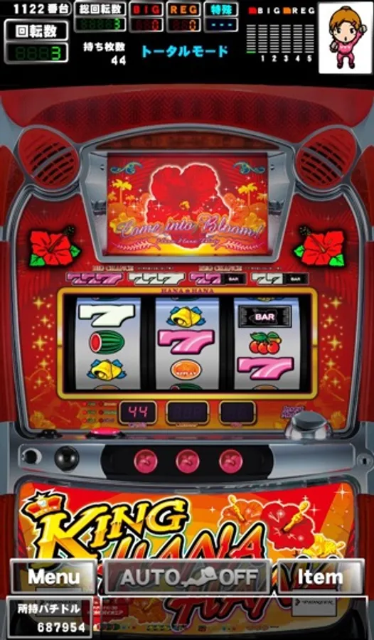 本機はハイビスカスが光ればボーナス確定となる完全告知仕様のノーマルタイプのマシーン。