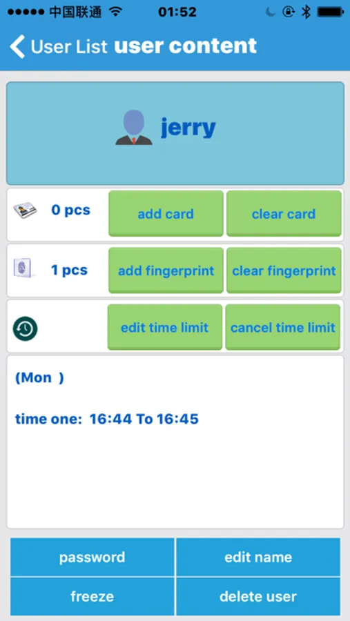 Operate Anlock bluetooth fingerprint lock, can edit users, bluetooth open the door, set up cards, passwords, finerprint to open the door, set the limited time for users, delete users, check the unlock records