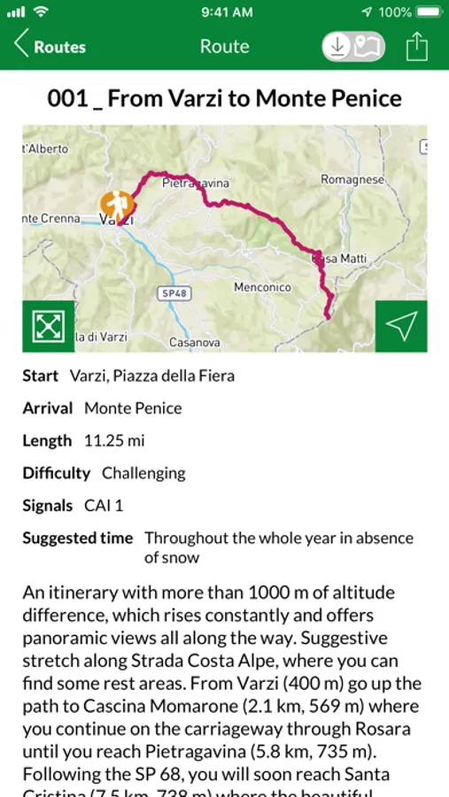 The interactive map will allow you to follow your position on the route and navigate safely, with GPS signal in offline mode.