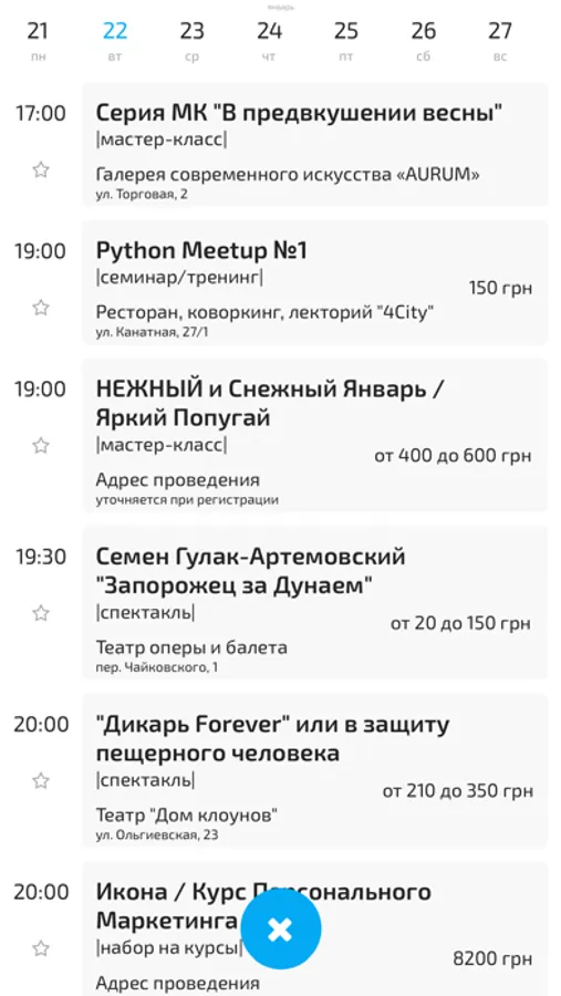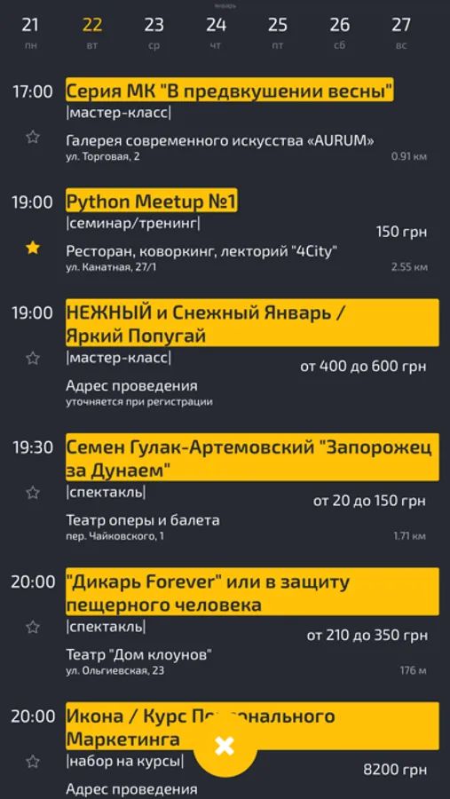 - присмотреть себе спектакль, концерт, мастер-класс, лекцию или любой другой ивент;