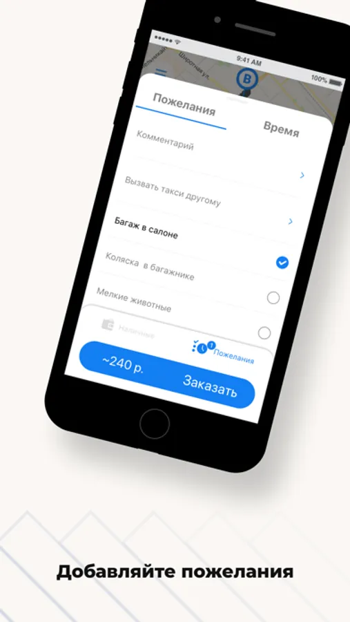 Добавляйте к заказу пожелания, напишите комментарий водителю, ускоряйте поиск автомобиля.