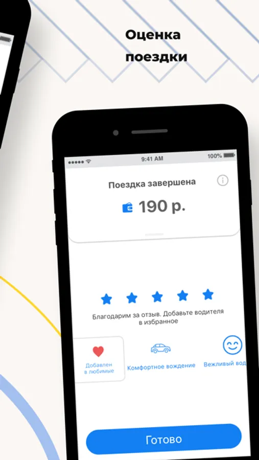 Оценивайте поездку с помощью готовых шаблонов. Занесите водителя в “Избранные”, если понравилась поездка.