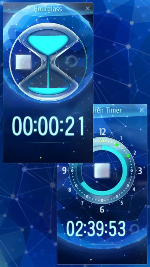 Timing tool that contains cool looking hourglass, elegant kitchen timer, a beautiful countdown timer and a reliable stopwatch. Set up to 15 timers of any type on 3 separate pages and work with any timer separately or start / stop your timers simultaneously using a single touch.