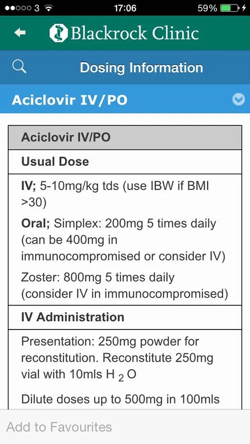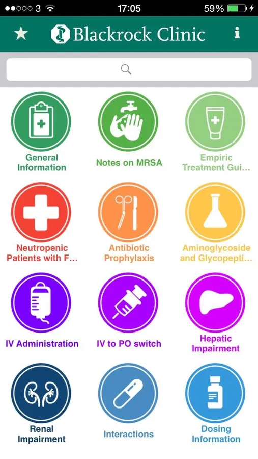 The Blackrock Clinic Antimicrobial Prescribing Guidelines are now available in mobile app format for smartphone devices. It includes practical evidence based guidelines on the appropriate use of antimicrobials for empiric antimicrobial treatment and prophylaxis in adult patients by body system, dosing calculators for renal function and for gentamicin and vancomycin dosing and much more. Contact the Pharmacy Department for username and password details.