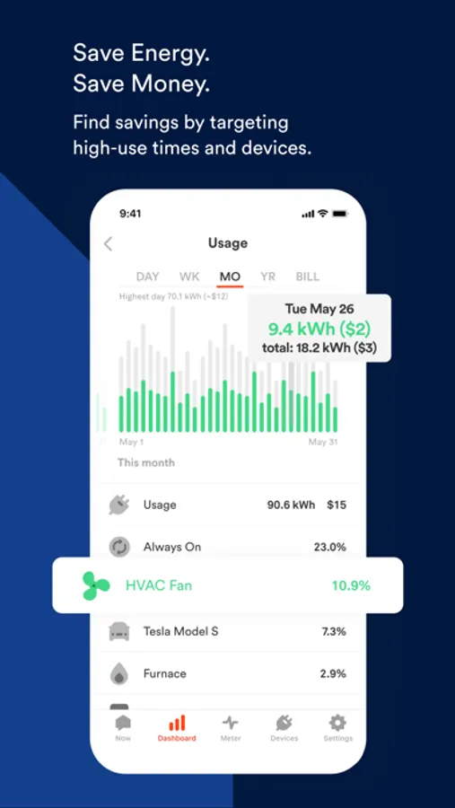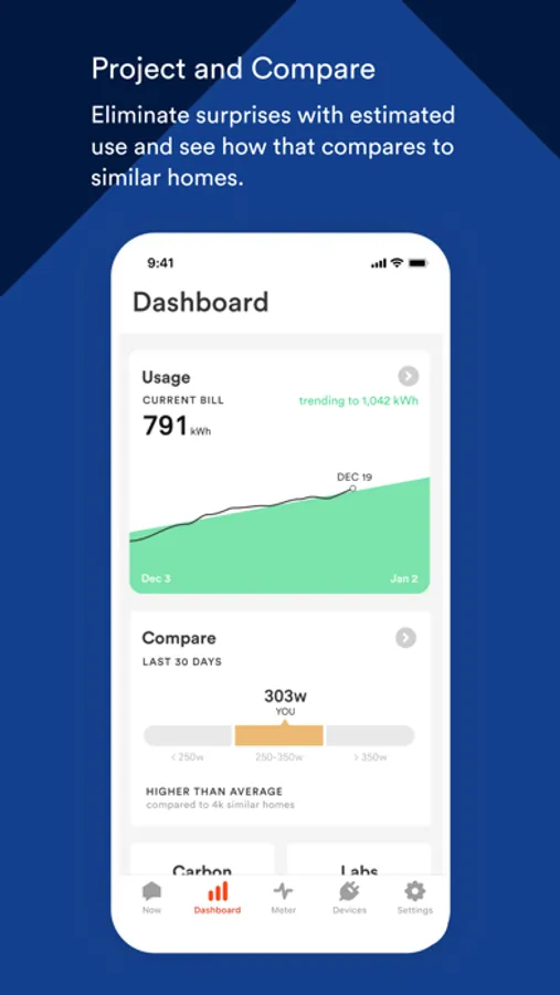 See how much energy your home is consuming in real time and how it compares to previous months right from your phone. Understand how your activity impacts your electric bill and get tips on how to save. People who use Sense save, on average, 8% on their electric bill.