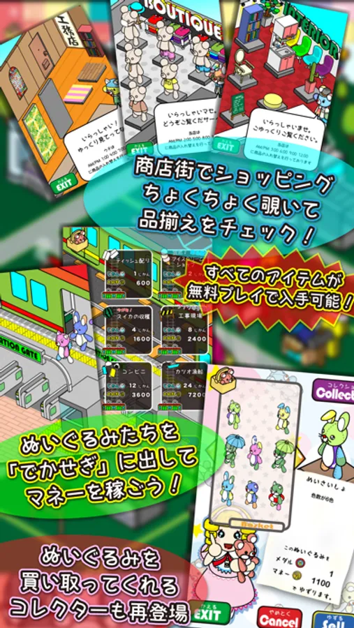 ・ぬいぐるみを「でかせぎ」にだしてマネー&アイテム稼ぎ。