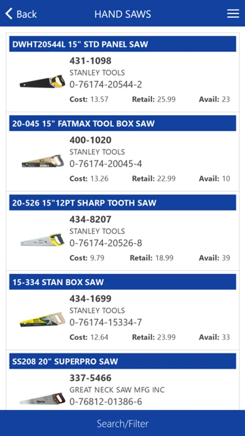 • Customized sorting options - sort by cost, item number, sales volume, and product subcategories