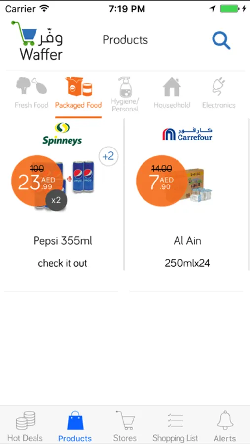 Waffer is your electronic promotional leaflet. It is your way of saving on groceries, household products, and electronics that are found in major supermarkets around you, without the hassle of searching through leaflets and websites. The app shows you all promotional items at your nearby supermarkets and alerts you when your favorite products go on discount. You can search by product or location directly from your mobile. You can also create shopping lists and share items with your friends.