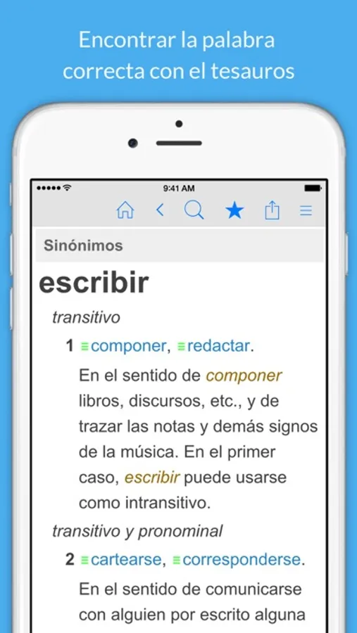 Buscar múltiples diccionarios de español, además de un tesauros, todo proveniente de las mas confiables fuentes. Incluye un diccionario offline.