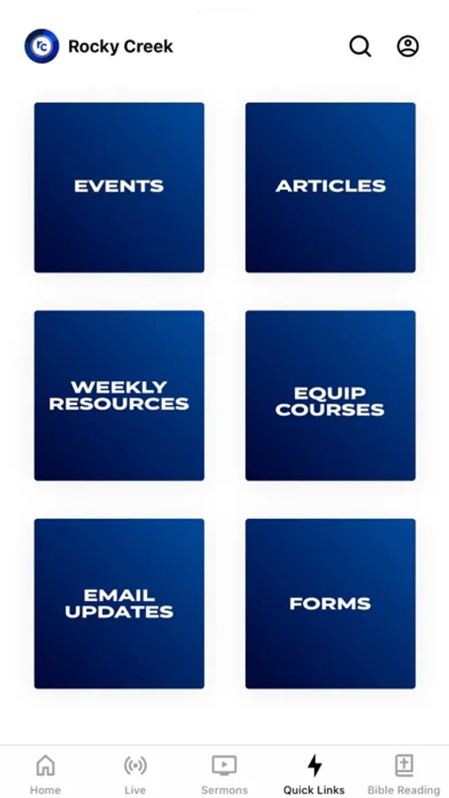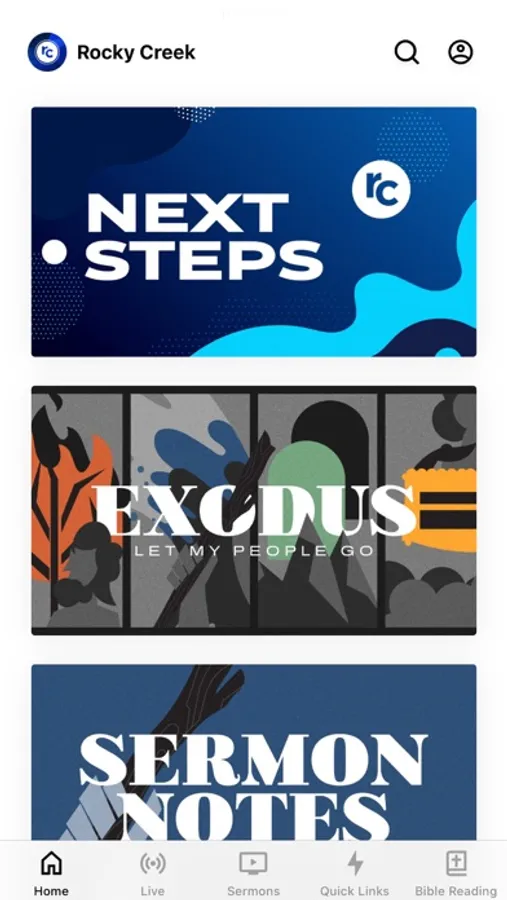The Rocky Creek app was developed with the Subsplash App Platform.