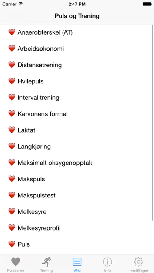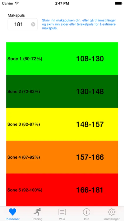 -App som viser pulssoner ut fra oppgitt makspuls.