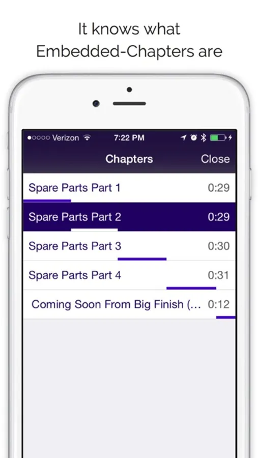Supports Audible and iTunes books with DRM (iOS 8 does not support DRM chapters)