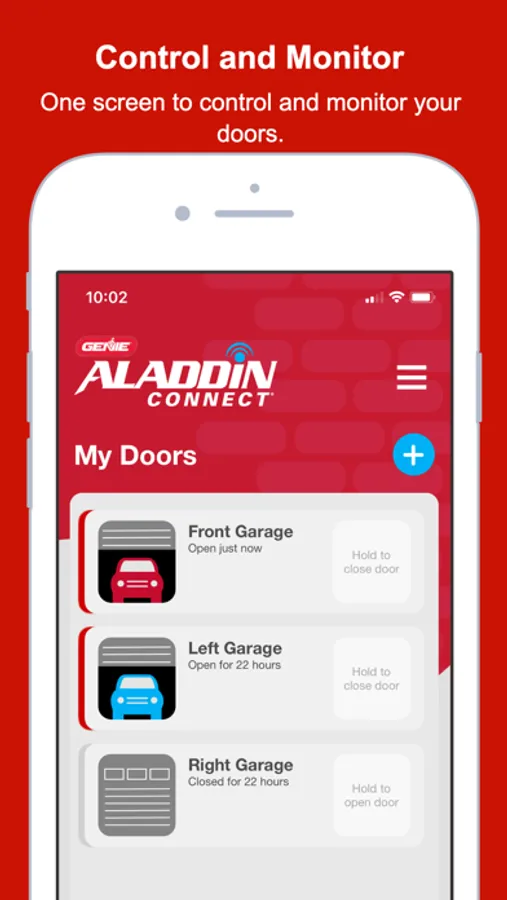 Aladdin Connect® allows you to monitor and control your garage door from anywhere. The Aladdin Connect® app works with any Genie Wi-Fi-enabled garage door opener or retrofit kit and can be set up in minutes. The app controls up to 20 garage door openers or retrofit kits and allows you to do the following: