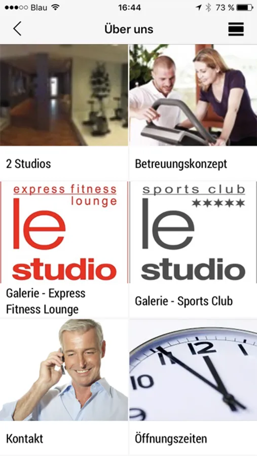 Informationen wie Öffnungszeiten, Kontaktdaten, Studiofotos und Trainingstipps sind griffbereit und können sofort per E-Mail zu Freunden geschickt werden.