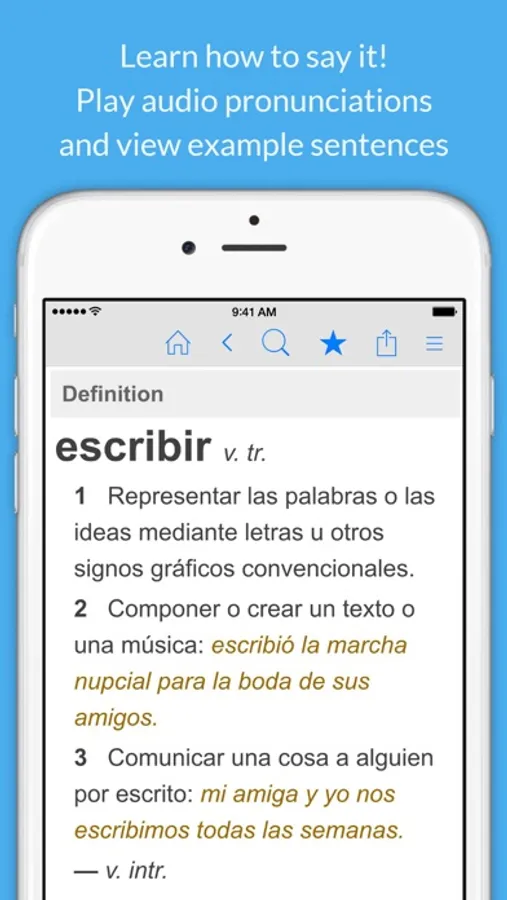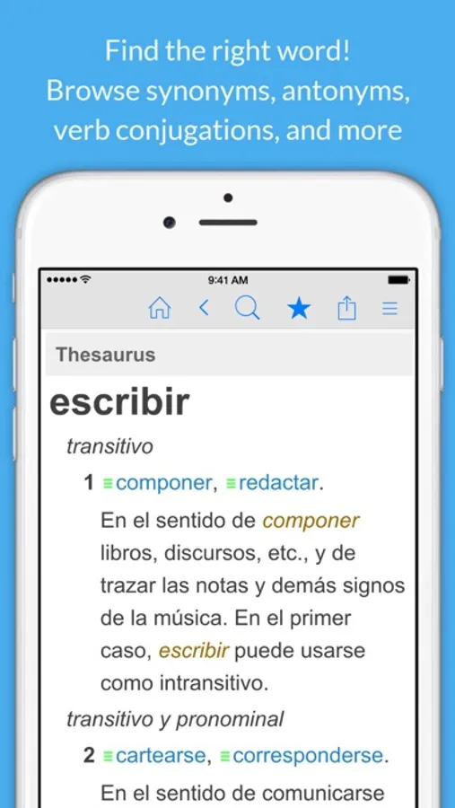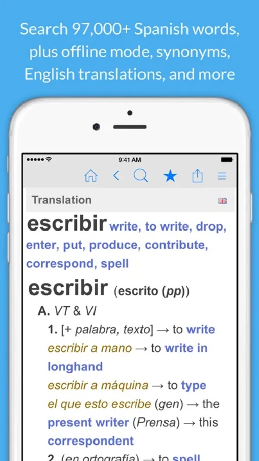 * 97,000+ Spanish definitions, including verb conjugations, all from authoritative sources.