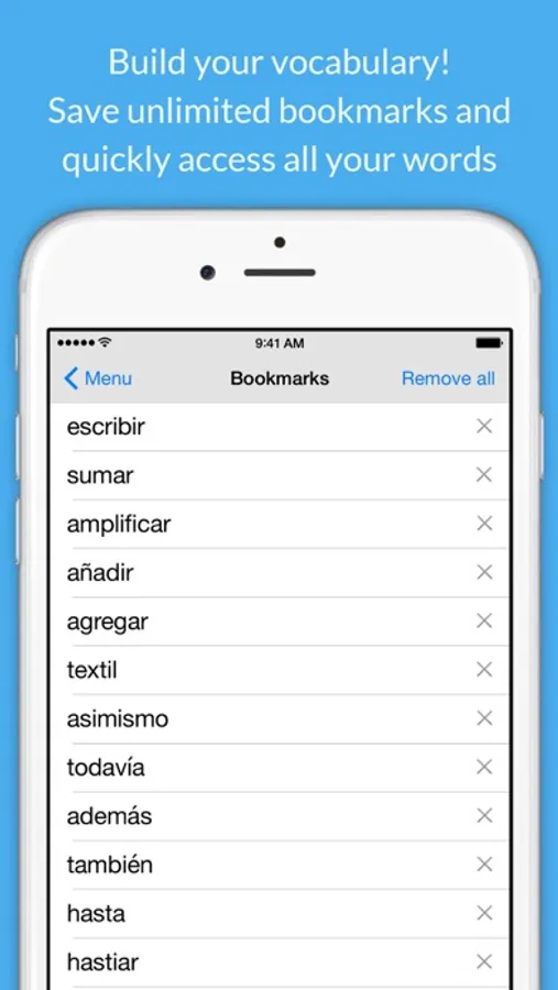 * 25,000+ words available in the free offline Spanish dictionary. No additional downloads required!