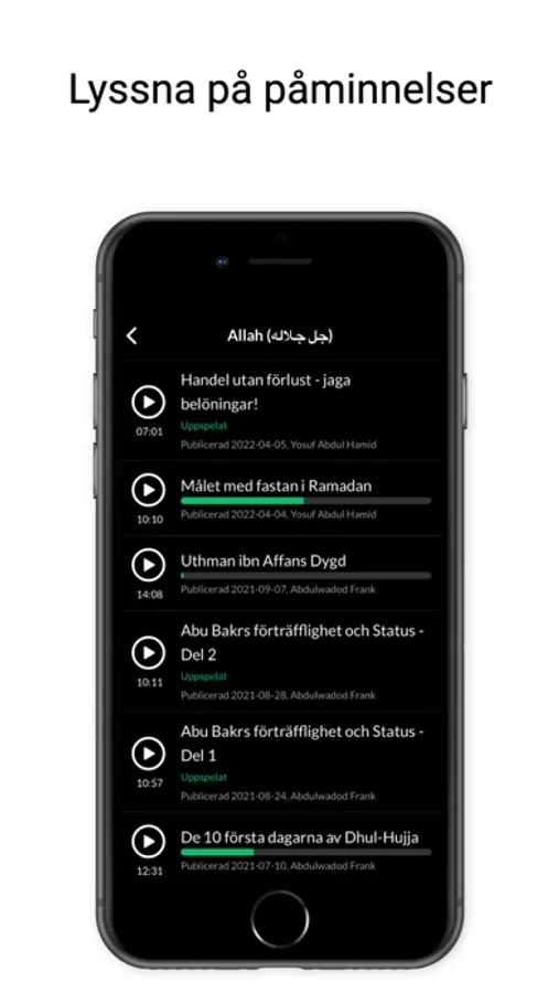 - Kontinuerlig uppdatering av påminnelser givna av imamer och islam studenter.