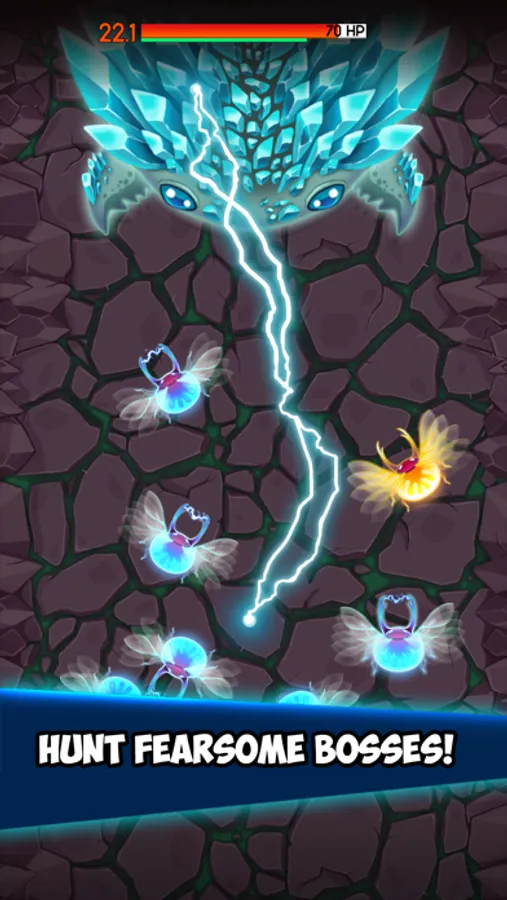 Giant reptiles invaded their lands and drove the crabs underground. Centuries later, infused with the power of crystals, they are ready to exact their revenge! Raise the swarm and resurface with a vengeance. Grow your army of crabs, evolve them and drive the scaly beasts out of your homeland!