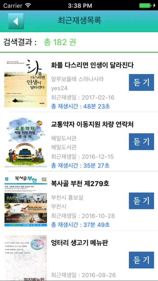 - 최근에 재생한 도서 목록을 제공하며 이전에 들었던 녹음도서에 쉽게 접근 가능합니다.