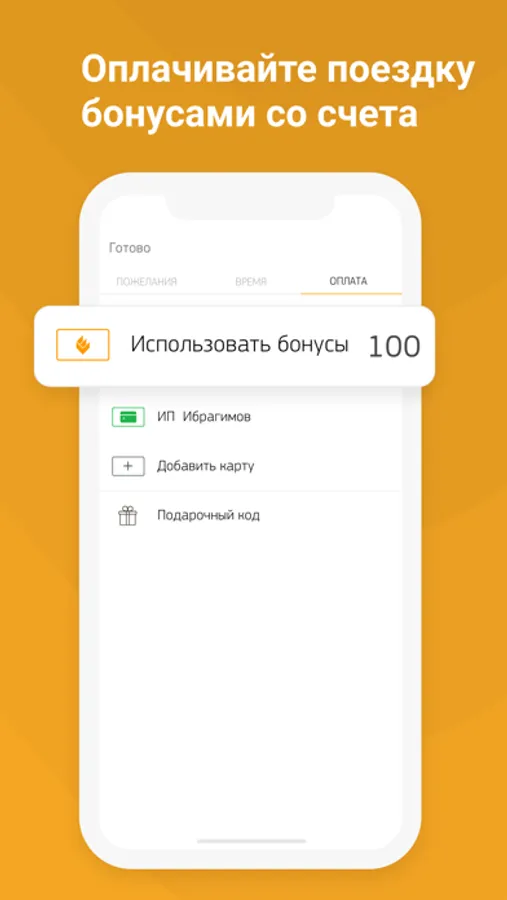 - предоставлена возможность оплачивать поездки с использованием бонусного счета, открытого при активации приложения и пополняемого после каждой поездки.