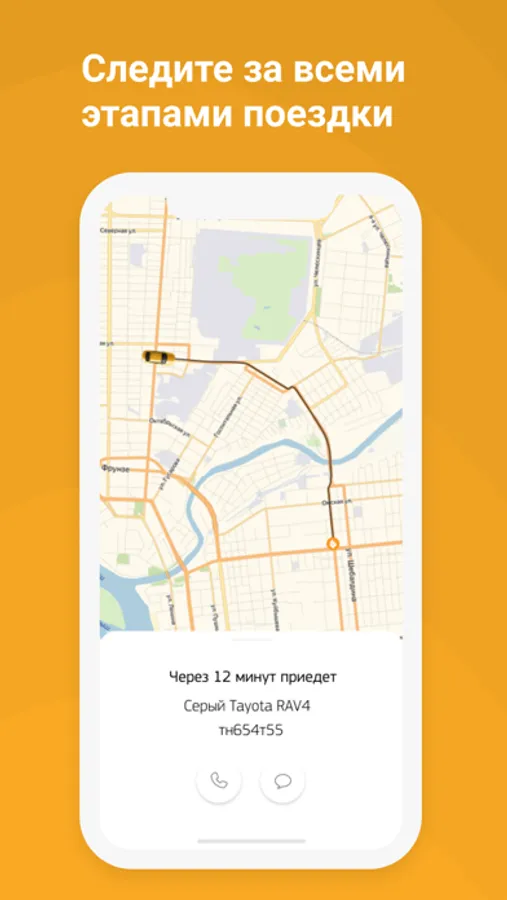 - маршрут движения такси отображается на карте;