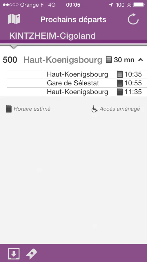 Aux points d’arrêt, consultation du temps d’attente jusqu’au passage du prochain bus ou autocar.