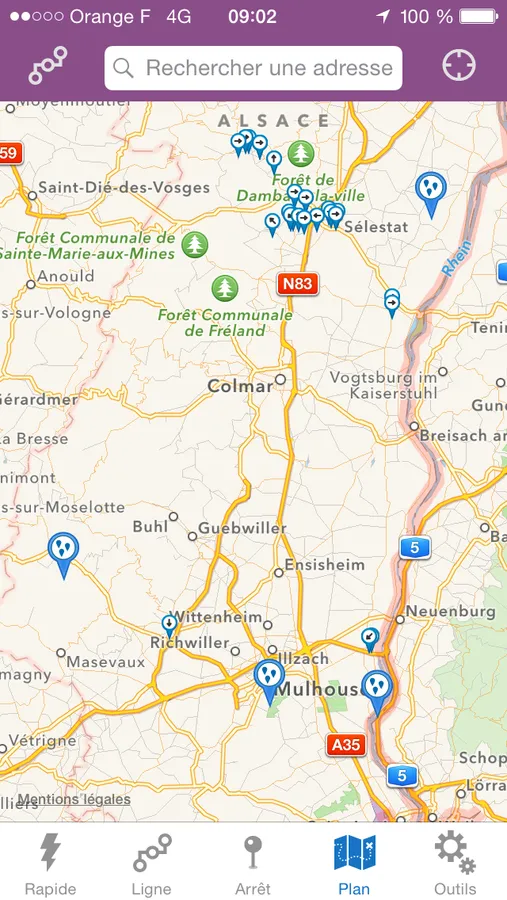 La recherche de l’information peut être effectuée par adresse, ligne et arrêt.