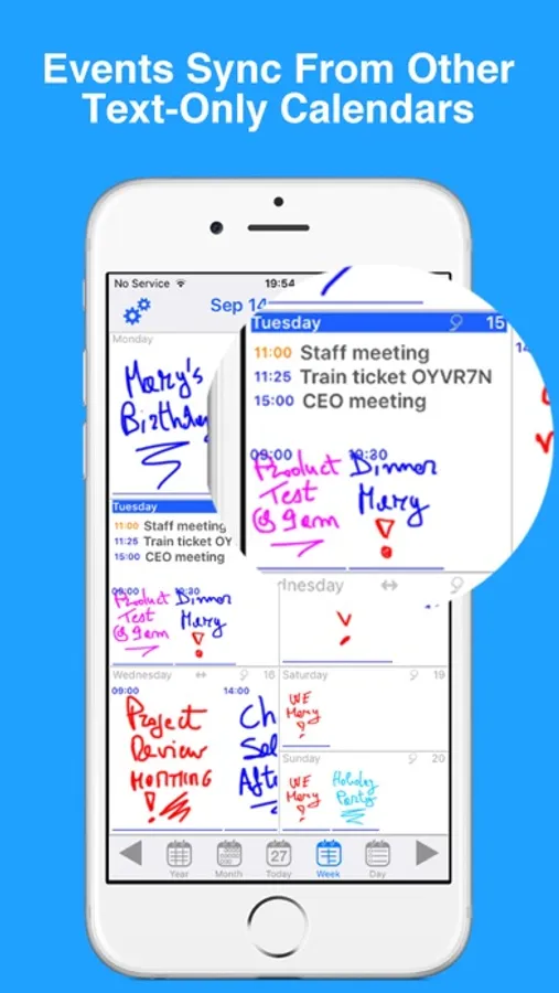 Handwrite your note as text or sketch, and JotTheDate will show the event or reminder in the Calendar.