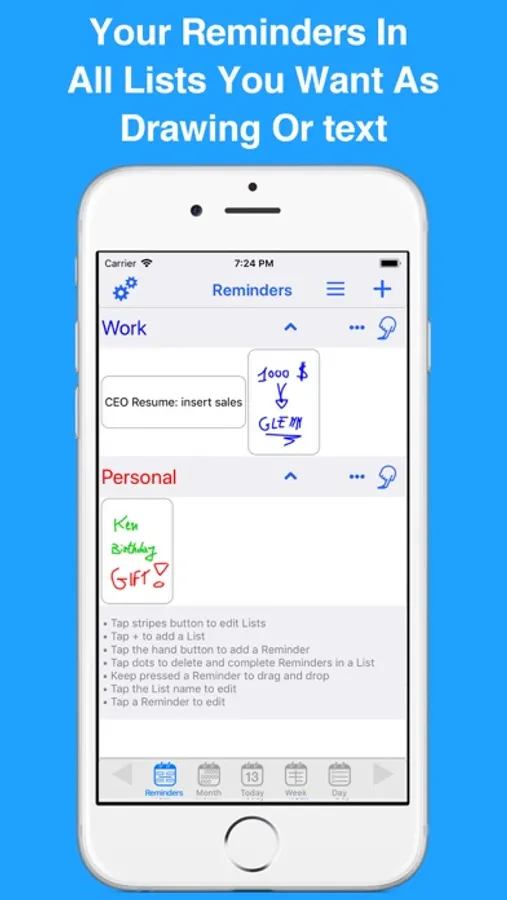 If you simply wish to draw or type a quick note as a reminder, you can do it with the Reminders view.