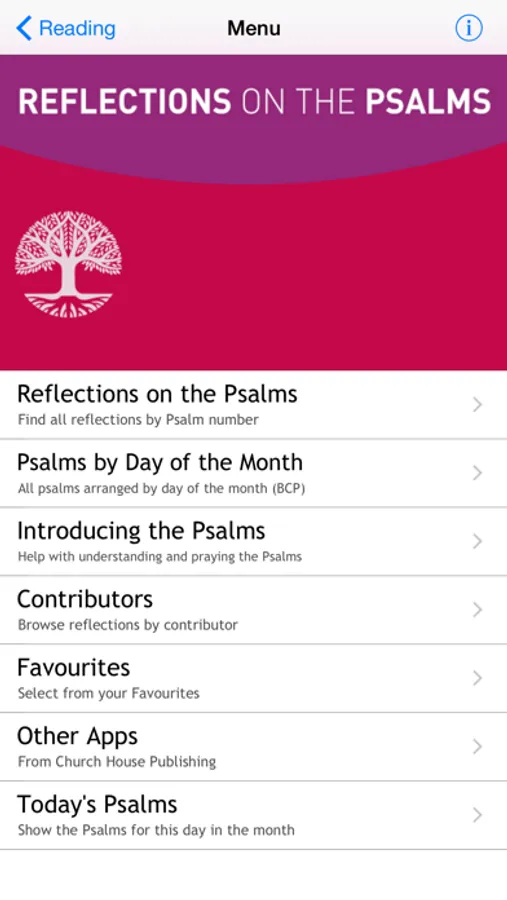 The app allows you to follow a simple pattern of Psalms over the course of a month – following the 1662 Book of Common Prayer – or in any order you choose.