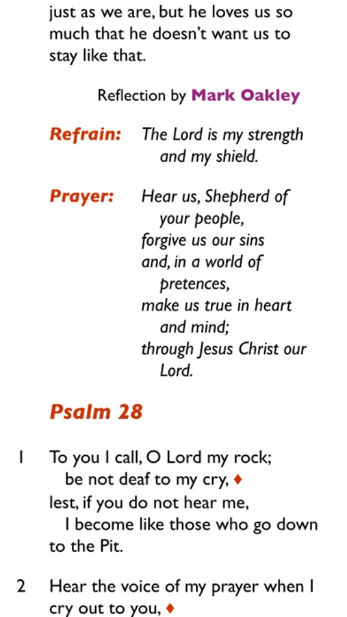 There is one reflection for each of the Psalms, with two or more reflections for the longer Psalms. Each reflection is accompanied by the full text of the psalm from the Common Worship Psalter, plus a suggested refrain and prayer.