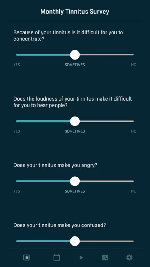 Within the app, you can track your tinnitus level each day along with your sleep and stress levels. From this, you can see how they and other elements affect each other. Through tracking, you can clearly see your improvement as you use SoundRelief.