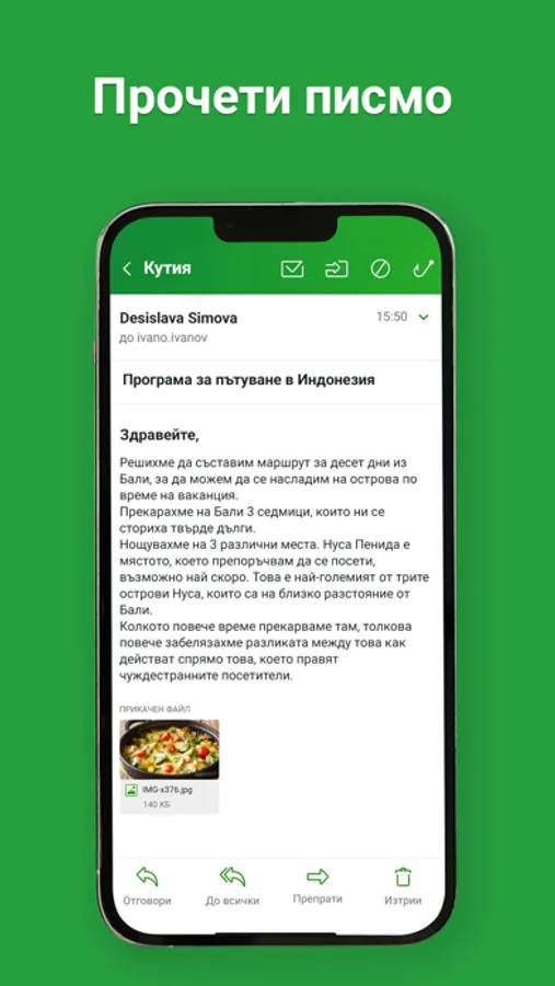 Както и при десктоп версията, така и с мобилното приложение можете да проверявате и да четете новите си писма, да пишете мейли и да сте в постоянна връзка с вашите приятели и бизнес партньори.