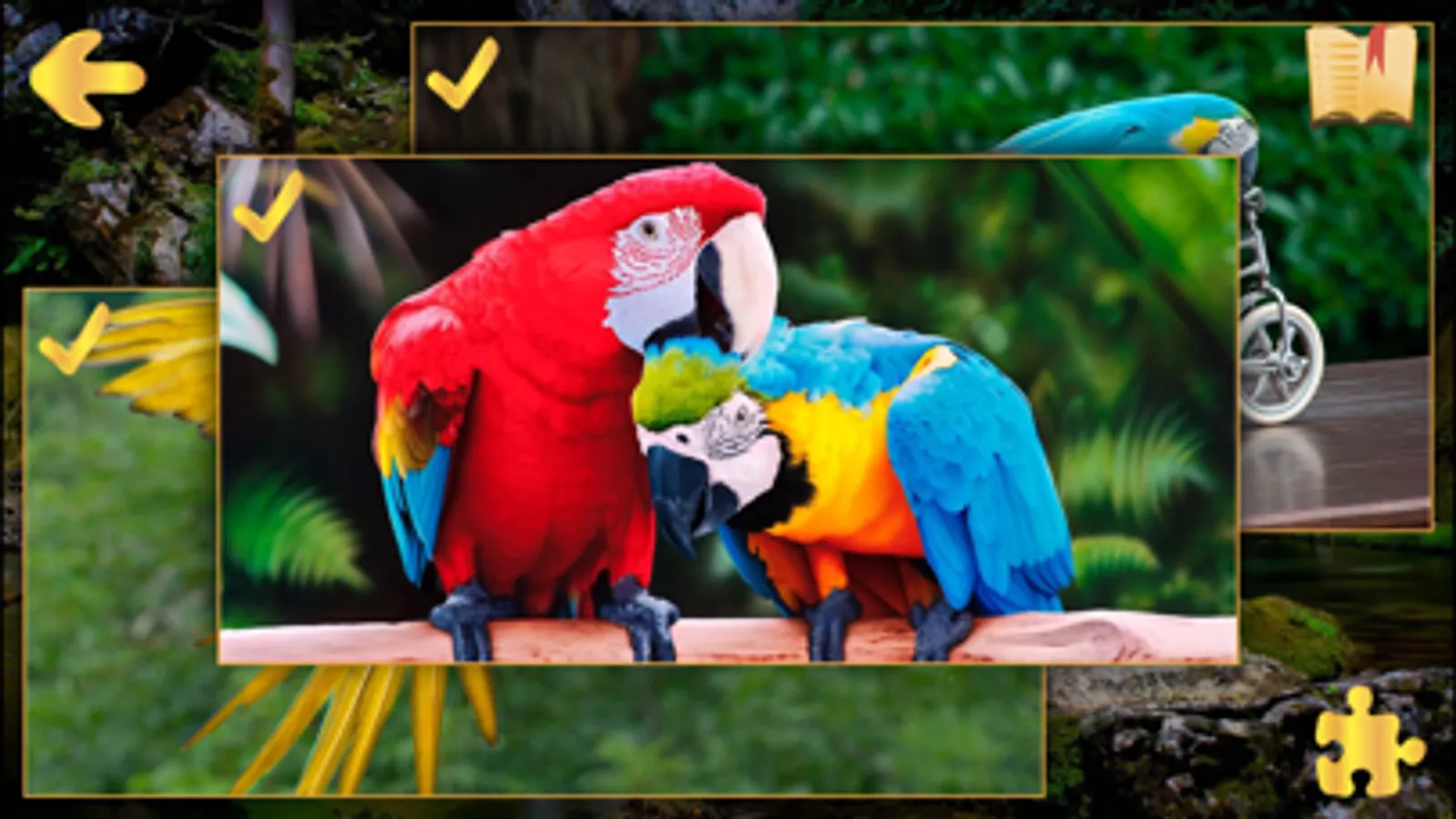 Birds: a peacock, a swan, an ostrich, a woodpecker, a filin, a flamingo, a colibri, a mandarin duck, a stork, a toucan, a macaws, an eagle.