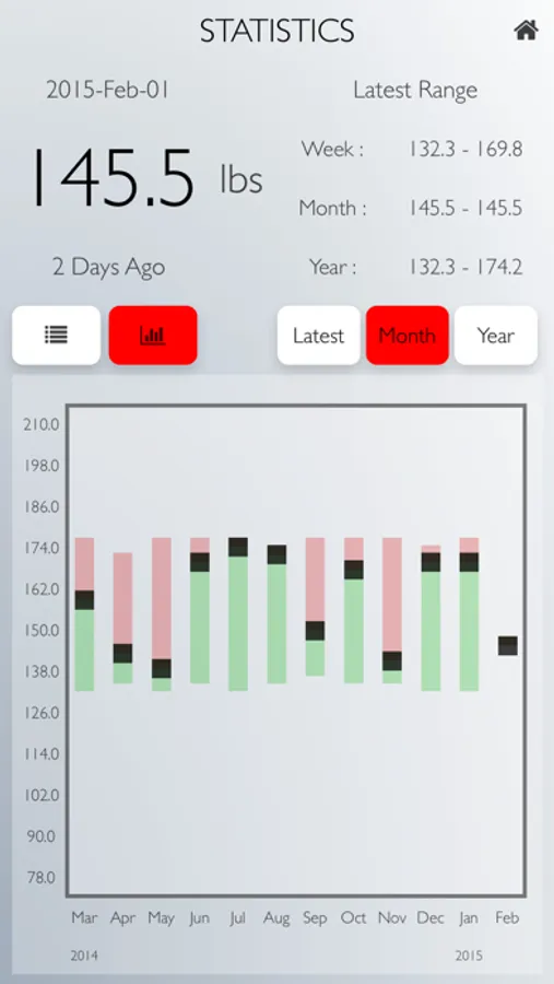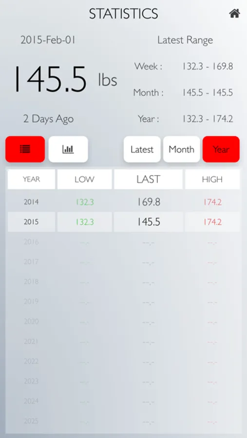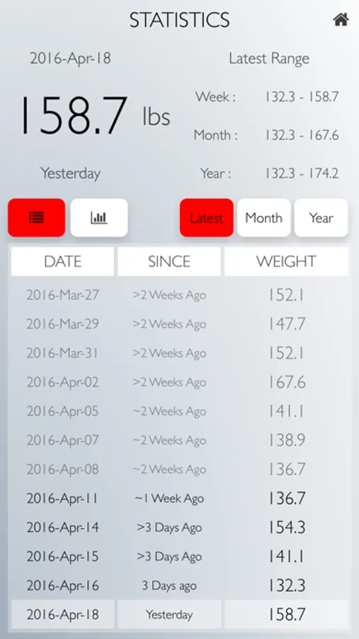 - Weekly stats: shows you the last, high, and low weights in the last week.