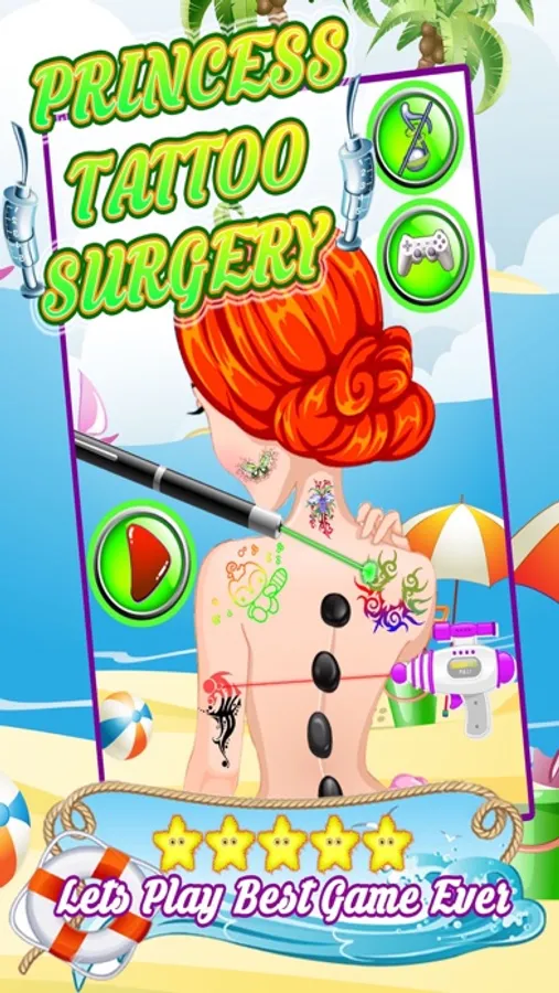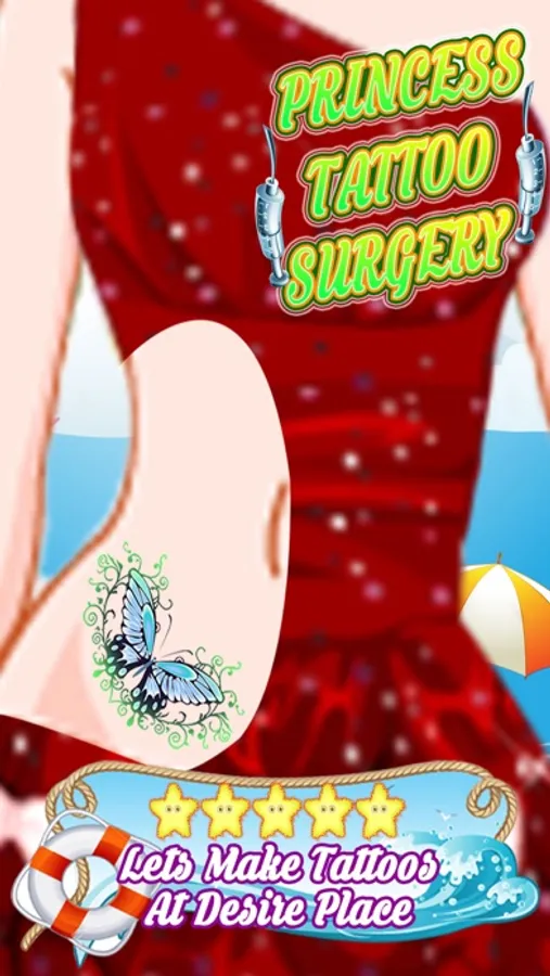 Girls love to have tattoo on their face, shoulder & butt etc. So we make this game for all little princess girls to design tattoos on princess body. In this tattoo surgery salon you can design a lot of tattoos on princess body. You can design a fashion tattoo on princess legs, thigh, belly, back & knee.