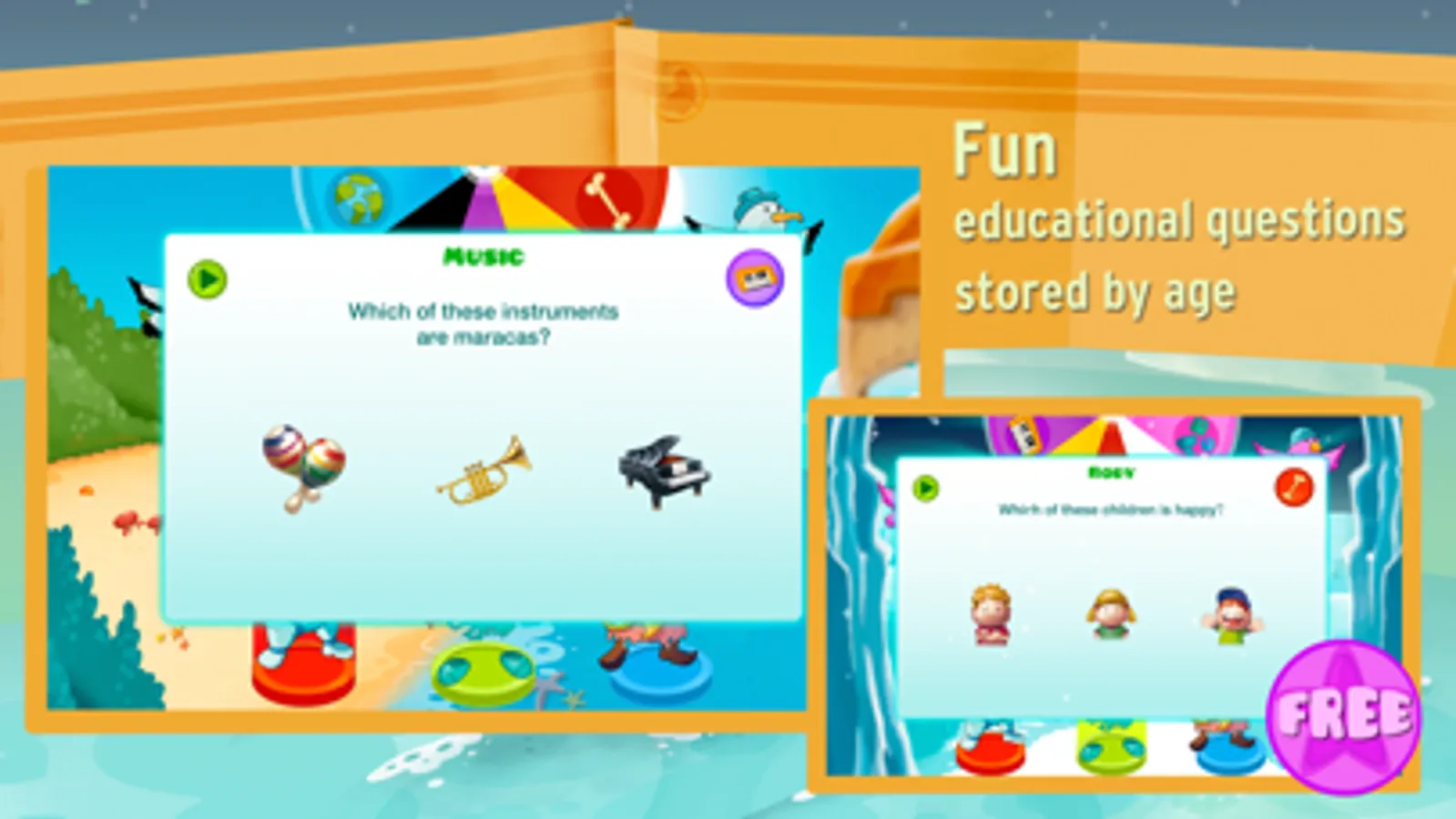 - Seven educational categories (cooking, animals, music, human body, letters, numbers and world traveler) and more than 1,000 questions.