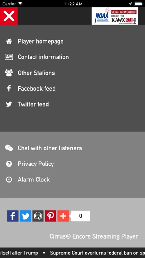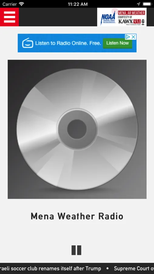 Mena Weather Radio is a stream available online and with apps of Mena, AR NOAA Weather Radio Station KXI97 broadcasting on 162.400 MHz. This stream and app are not intended to be substitutes for an actual NOAA Weather Radio. This service is a courtesy of KAWX Radio in Mena, AR.