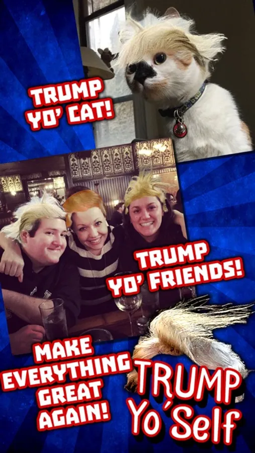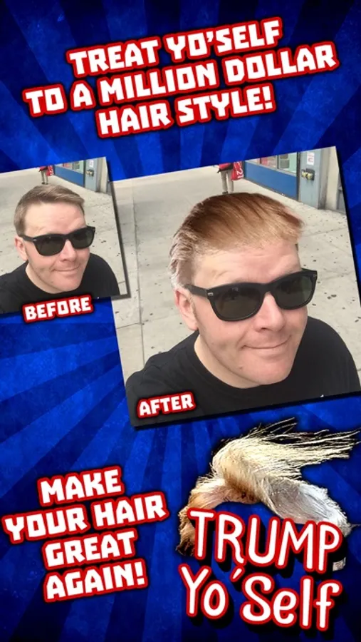 Select from a bushel of Trump-tastic hair styles to add to your photos. You can then edit your hair, draw, add stickers, and more! You'll be ready to run for president in no time!