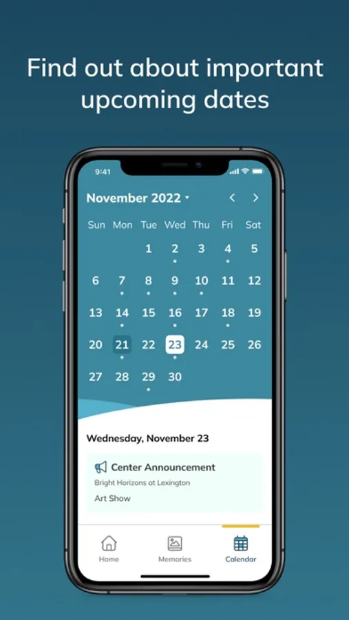 Calendar reminders will help you stay up to date on center events, classroom activities, due dates, and supplies to bring in for your child.