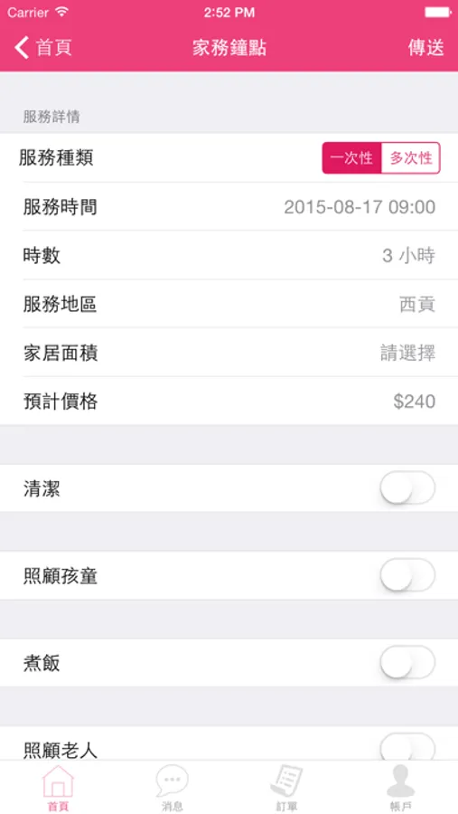 方便 : 一次性家務助理及保姆,能一鍵搜尋適合人選,快速智能配對